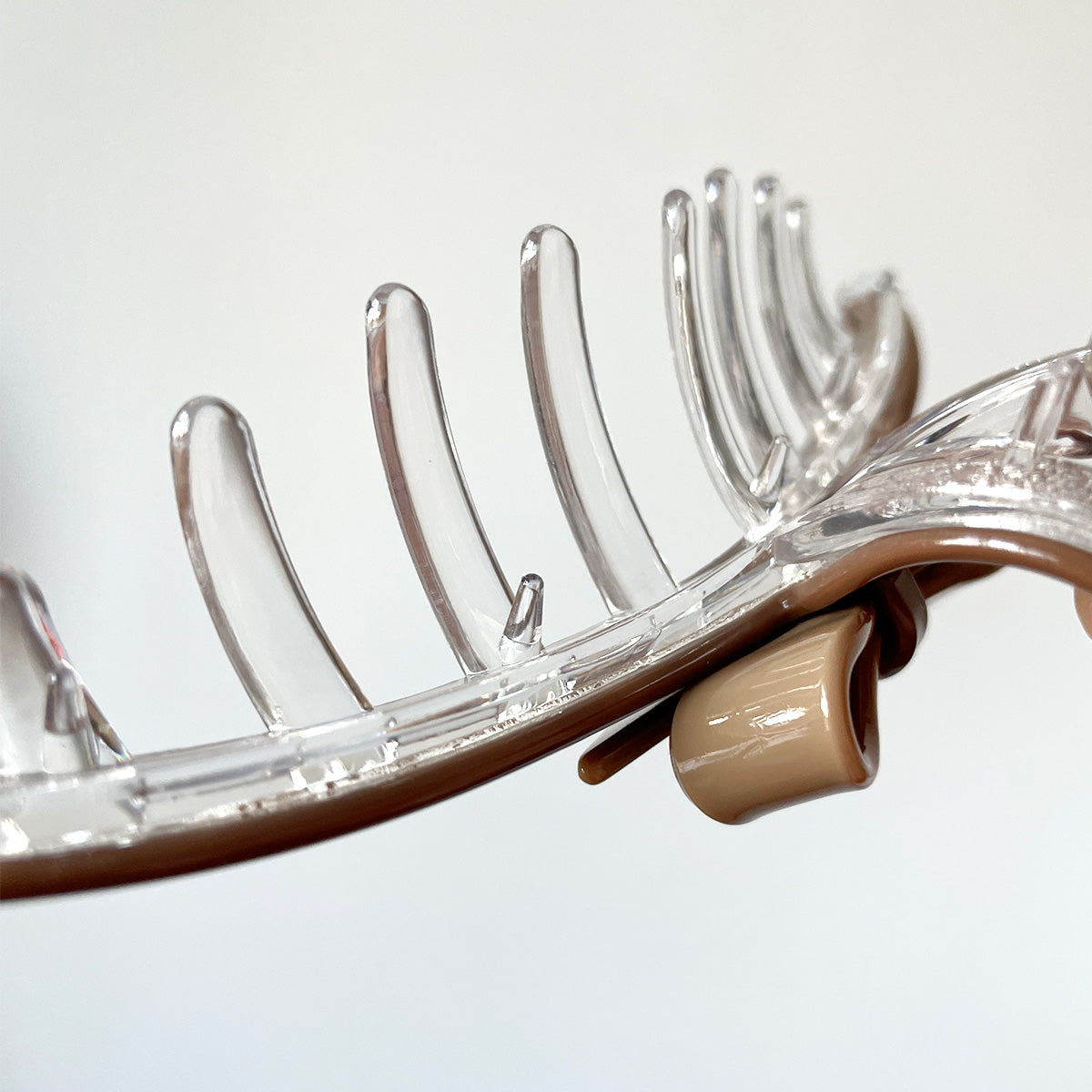 The hair clip has a row of small teeth inside, which hold the hair securely. The double-layer design ensures it stays in place and doesn't slip easily.