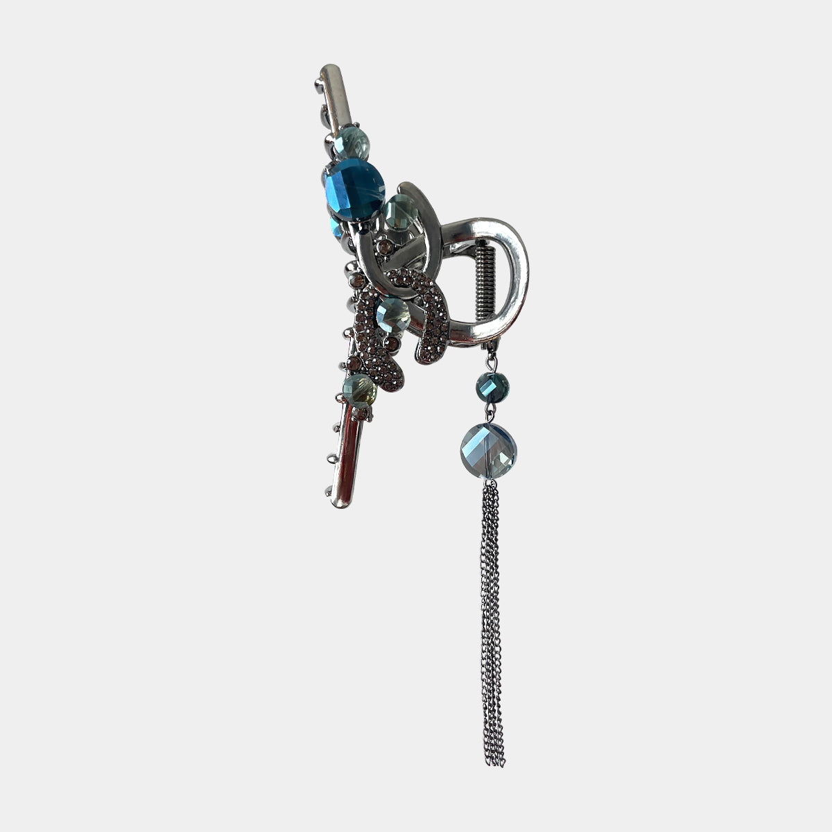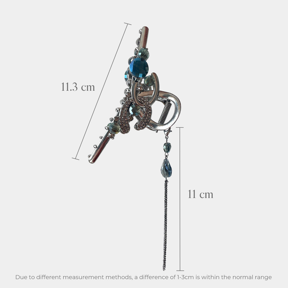 This elegant metal tassel claw clip, featuring a delicate combination of shimmering crystals and dangling chain details.
